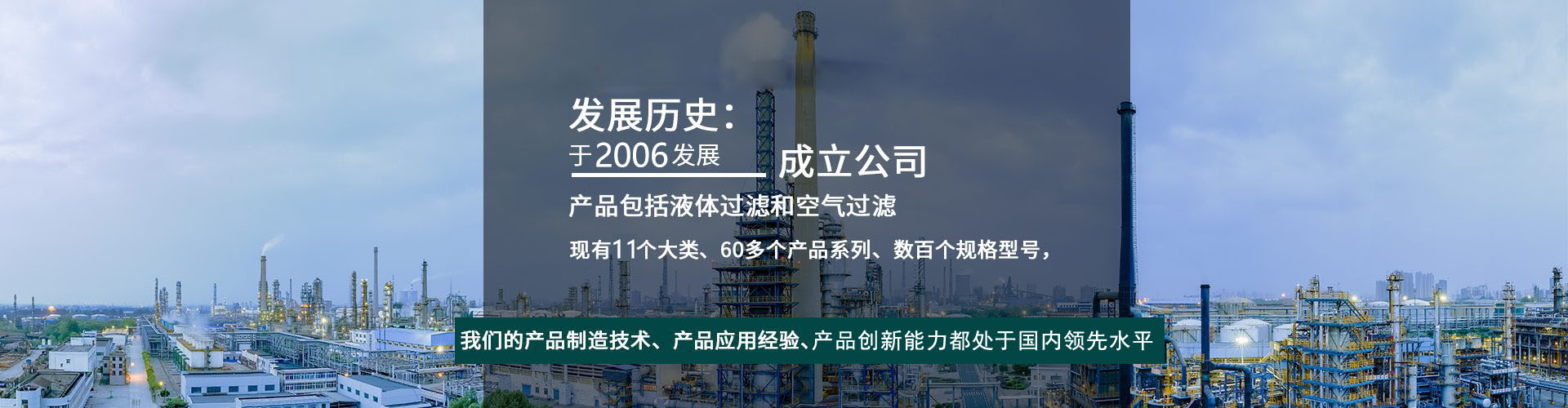 我們的發(fā)展歷史:于2006年成立深圳市龍崗區龍崗正豐過(guò)濾器材行,2010年發(fā)展成立深圳風(fēng)格過(guò)濾器材有限公司,2020年業(yè)務(wù)拓展由此轉型升級成立了風(fēng)格過(guò)濾科技(惠州)有限公司。產(chǎn)品包括液體過(guò)濾和空氣過(guò)濾,現有11個(gè)大類(lèi)、60多個(gè)產(chǎn)品系列、數百個(gè)規格型號,我們的產(chǎn)品制造技術(shù)、產(chǎn)品應用經(jīng)驗、產(chǎn)品創(chuàng )新能力都處于國內領(lǐng)先水平。